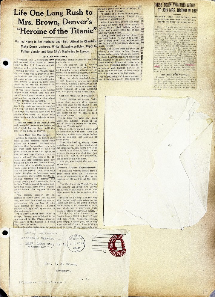 The Molly Brown House Museum’s collections consist of over 8000 objects and archives which help us understand the life and historical context of the “Unsinkable” Margaret Tobin Brown, and her house on Capitol Hill.