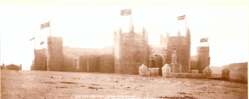 In early November, 1895, work was started to prepare the land. To build the actual Ice Palace, laborers, craftsmen, and stonemasons were hired (and paid very well for the time.) The Leadville Ice Palace was underway shop owners were making money, people began spending money, and the town’s economy appeared to be coming back to its former glory. The finished Palace was larger than the original Broncos football stadium at Mile High! Two main octagonal towers were 90’ high, 40’ in diameter and 126’ in circumference. The other towers were 60’ high and 45’ high respectively. The walls were 38’ high with buttresses and other trappings of a medieval castle.