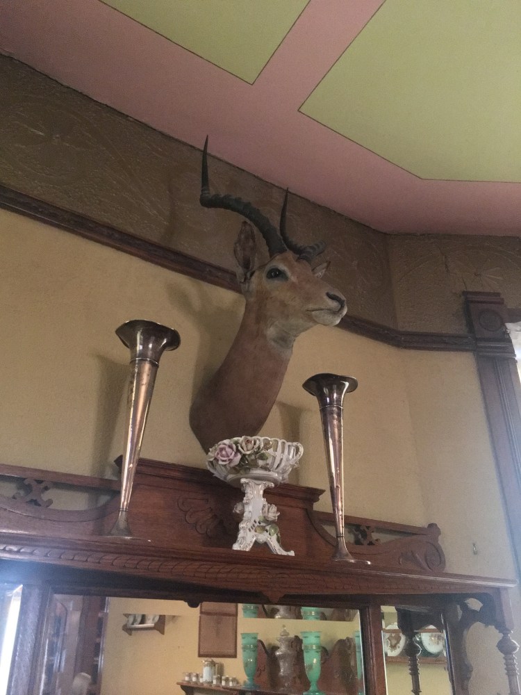 The pursuit of collecting was held in high esteem at the time. It was thought that the illustration of such lofty pursuits elevated the owner in the eyes of contemporary society. In this sense, formal parlours function as private museums, comprising of a collection, with the sole purpose of impressing and wowing the guests of said family home[iv]. The display and subsequent social consumption of specimens from the natural world was not only reflective of a person’s brains, but their brawn as well. The hunting and killing of animals as a sport has always been popular with the human race since the days we stopped hunting out of necessity. Contemporary onlookers viewed hunting trophies as a symbol of a man’s accomplishments. His masculine traits were highlighted through his ownership and display of snarling, formidable beasts throughout the house, reflecting the glory of the hunter in the ferocity of the natural order[v]. Margaret was known to have gone hunting with Larry on occasion. She did this more out of a mo
